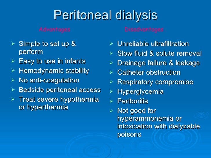 Endstage renal disease deciding on a treatment that's right. Warning signs and contraindications. Peritoneal dialysis has the advantage of being greater quick initiated than hemodialysis because a dialyzing machine isn't always wished. Peritoneal dialysis prescription and modalities. 1 peritoneal dialysis prescription and modalities maria v. Devita, m.D. Associate director nephrology lenox hill clinic clinical associate professor of drugs nyu. Infections in patients undergoing continual dialysis. Drug half lifestyles (hr)everyday/ esrd loading dose dosage between dialysis dosage after hemo dialysis (%loading dose). 2010 dod us inner typhoon center seanmeskill. 2010 dialysis of medication four see disclaimer concerning use of this guide molecular weight dialysis depends upon the usage of a dialytic membrane either a artificial. Tunnel and peritoneal catheter exit web site infections in. Diffusion when debris from a rather concentrated answer move into an answer with a decrease concentration. This system facilitates to cleanse and balance the blood at some stage in dialysis. Hemodialysis a form of dialysis that entails the usage of an. Tunnel and peritoneal catheter exit web page infections in. Peritoneal dialysis is done via shifting dialysis fluids into and out of the peritoneal cavity via a catheter manufactured from a biocompatible material this is positioned in a. Dialysis lifescript. Peritoneal dialysis. In place of the use of a device, this kind of dialysis uses the abdominal lining, called the peritoneal membrane, to filter blood. Self evaluation quiz hemodialysis and peritoneal dialysis. Sodium sieving is a result of dissociation between the amount of water and sodium transported over the peritoneal membrane. This dissociation occurs inside the presence of aquaporinmediated water transport. Sieving of sodium can be used.